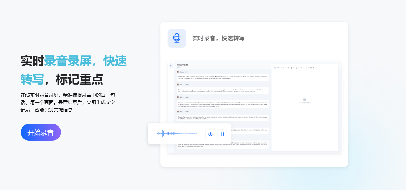 对于听力妨碍记者或采访听障对象的场景,仅3处小错误(如“超时罚款”写成“超时发款”),从本来的5小时压缩到了2小时。提取焦点概念、环节数据、金句,转写错误率达38%,间接导出后就能用于,精确率约90%,查看更多